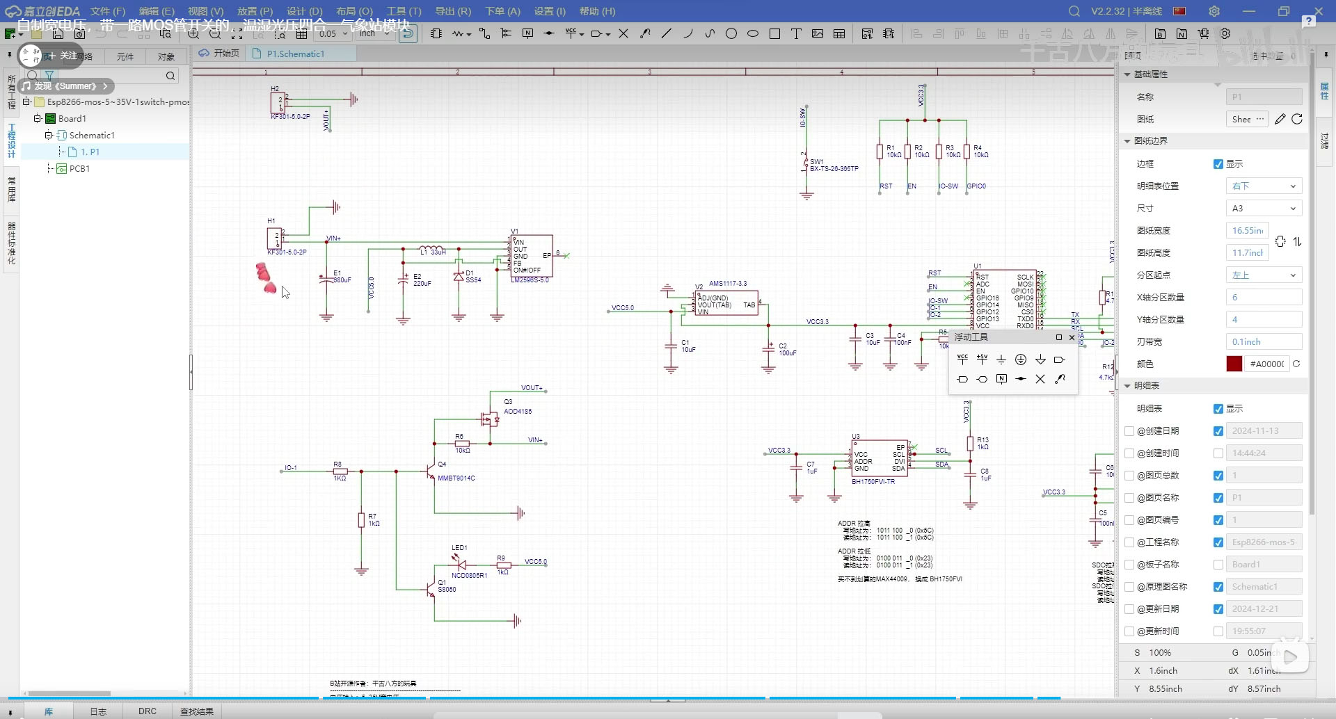 1. 模块的原理图、PCB电路图及工程文件,使用嘉立创EDA画图,这样方便免费打样PCB。